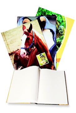 Linkovaná záznamní kniha v laminovaných deskách. Bělený papír, lepená vazba.