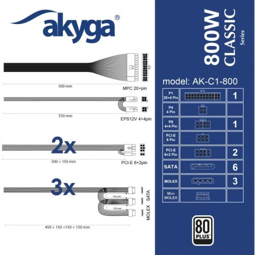 Formát: ATX 2.31 Série: Classic Napájecí napětí: 230 V Spotřeba energie: < 5 A Účinnost: > 80 %