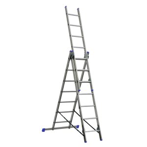 Žebřík Al, univerzální, 3dílný, 7 příček, 1,91 / 3,99 m, VHR H 3x7, nosnost 150 kg, ELKOP.