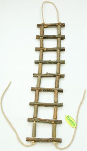 Provazový žebřík s příčkami z větví z tvrdšího dřeva. Použitím v ubikaci zajistíte zvířátku aktivní pohyb spojený se zábavou. Vhodný pro myšky, osmáky, potkany a činčily. Délka: 60 cm