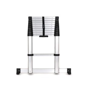 Žebřík teleskopický 320 x 81 x 8 cmHliníkový teleskopický žebřík s velmi stabilní konstrukcí, se stabilizační základnou a bezpečnostním zpomalovacím systémem skládání - dle nejnovější normy EN 131-6. Automatický zámek jednotlivých příček, maximální nosnost 150kg. Výška pouhých 84 cm ve složeném stavu umožňuje snadné přenášení, uskladnění i převoz například autem. Možnost volitelné výšky výsuvu dle potřeby. Žebřík má celkem 10 příček + horní madlo + spodní stabilizační lišta. Rozestup příček je 29 cm. Délka (cm): 320 | Rozměry (cm): 320 / 84 x 81 x 8 | Materiál: Hliník | Barva: Stříbrná / černá | Hmotnost netto (kg): 12 | Hmotnost brutto (kg): 12,6 | Záruka (v měsících): 24 měsíců | Výrobce / značka: BECKFORD