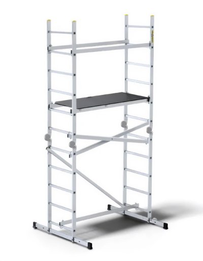 Lešení - multifunkční s širokým spektrem použití. Jednotlivé prvky lešení lze využít jako samostatně stojící dvouprvkový žebřík, naklápěcí žebřík a pracovní plošinu. Skvěle poslouží při každodenní práci profesionálů, ale najde široké uplatnění i při různých domácích pracích.