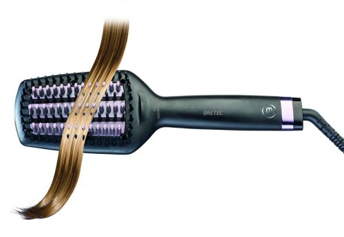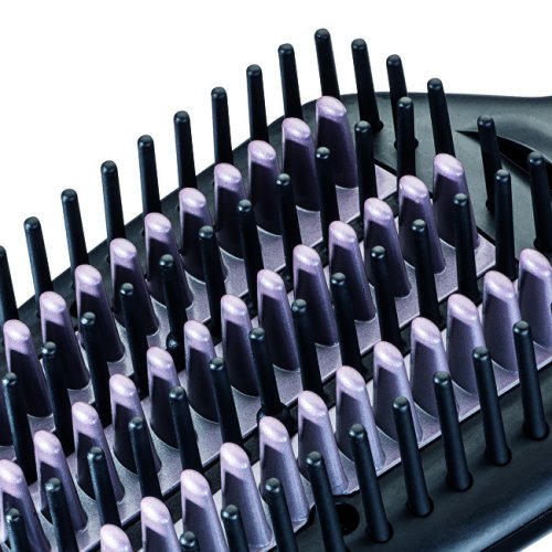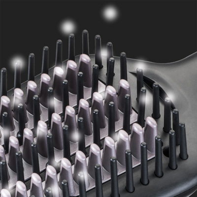 Žehlicí kartáč vyhladí vlasy už za 3 minuty a dodá účesu zářivý lesk. Kombinace nylonových a keramických zahřívacích štětin zajišťuje rovnoměrné rozložení tepla a snadné klouzání po vlasech bez tahání. Ionizační technologie vlasy hydratuje, chrání před statickou elektřinou a zabraňuje krepatění během celého dne. Díky široké ploše a 109 štětinám je vhodný i pro husté nebo vlnité vlasy. Nastavitelná teplota až do 200 °C, LED kontrolky a otočný kabel zajišťují pohodlné a bezpečné používání.