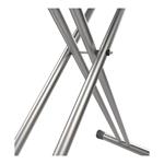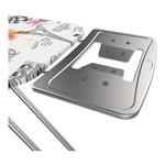 Kovová konstrukce má stříbrnou elektrostatickou práškovou barvu. Speciální nástřik ji chrání proti korozi. Nohy konstrukce jsou vybavené plastovými protiskluzovými koncovkami, které zajišťují její stabilitu. Na jednom konci prkna se nachází praktická odkládací plocha na žehličku. V případě potřeby ji tam kdykoliv položíte. Silikonové podložky brání ve sklouznutí žehličky.