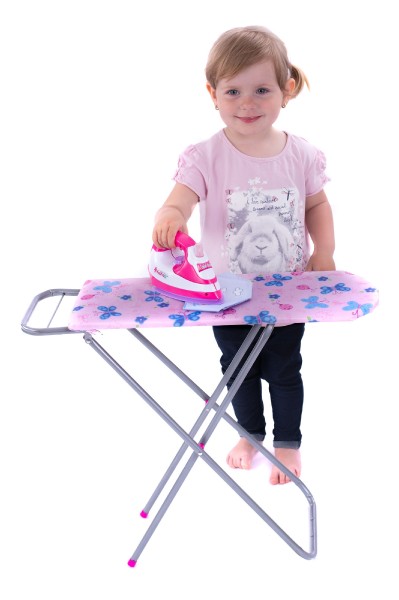 Dětské žehlicí prkno s kovou konstrukcí pro malé holčičky, které by rády pomáhaly mamince v domácnosti. Pouze žehlicí prkno bez žehličky. Rozměry prkna 61 x 51 x 19 cm. Baleno v sáčku. Rozměry balení 22 x 82 x 6 cm. Vhodné pro děti od 3 let.