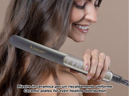Wlegantní a moderní žehlička na vlasy je ideální volbou pro každodenní úpravu vlasů bez obav z poškození teplem. Díky keramickému povrchu destiček zajišťuje rovnoměrnou distribuci tepla, což zaručuje hladký a lesklý výsledek. Žehlička s plovoucími destičkami a možností nastavení teploty se snadno přizpůsobí různým typům vlasů.