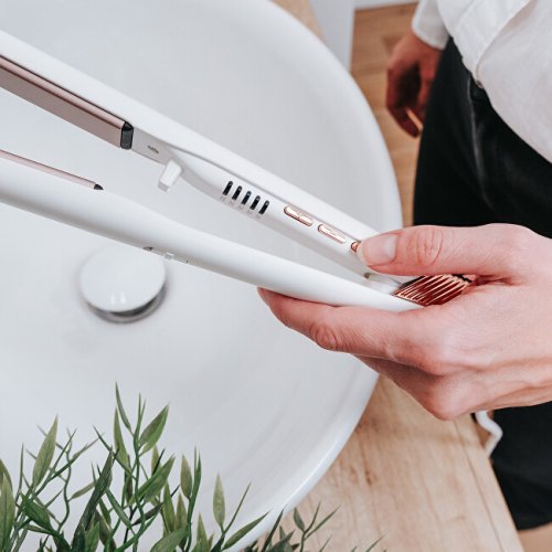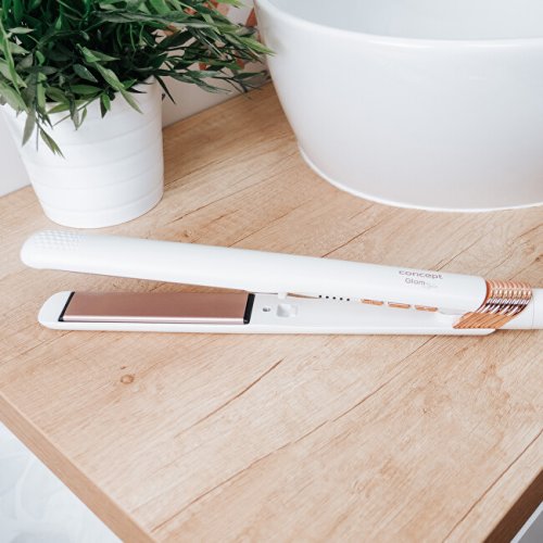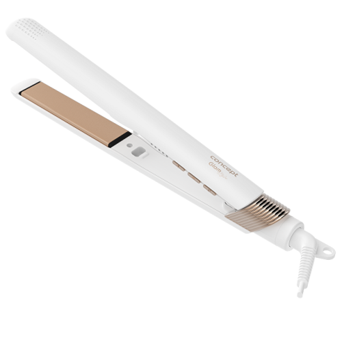 Žehlička na vlasy VZ2110 Glam Style nabízí profesionální styling v pohodlí domova. Je vybavena plovoucími keramickými deskami, které se přizpůsobí každému prameni a zajišťují dokonale hladký skluz bez poškození vlasů. Díky rychlému nahřátí a čtyřem teplotním stupňům (160–220 °C) je vhodná pro všechny typy vlasů. Samozřejmostí je automatické vypnutí a zámek žehlících ploch pro bezpečné a praktické použití.