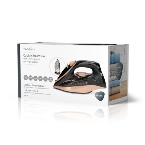 Bezdrátová napařovací žehlička Nedis IRONCL250 přináší naprostou volnost pohybu a snadné žehlení bez zamotaných kabelů. Díky výkonu 2200 W, rychlému zahřátí do 35 sekund a keramické ploše zajistí hladký skluz po všech tkaninách a perfektní výsledky bez záhybů.