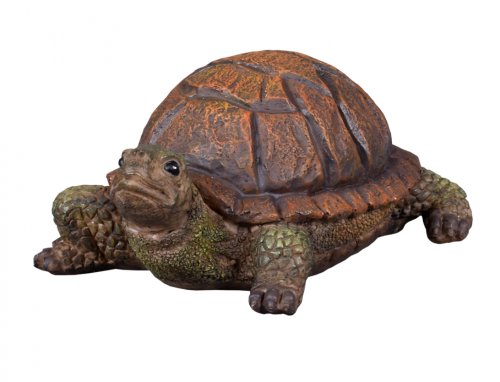 Zahradní dekorace v podobě želvy. Je vyrobena z polyresinu, který figurce dodává pevnost a také odolnost vůči povětrnostním vlivům. Rozměry: délka 17 cm, výška 8 cm, hloubka: 13 cm. Barva: oranžová, bílá.