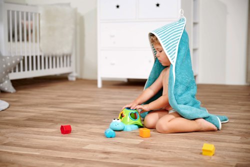 Vkládačka ve tvaru želvy ve vodě plave na hladině, součástí 5 kostiček různých tvarů. Délka želvičky 20 cm.