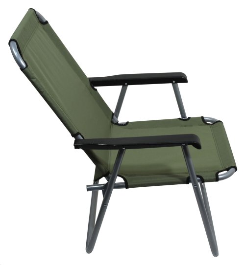 Dvě opěrné nohy se rozloží klasicky tahem od sebe. Komfort zajistí zádové opěradlo a dvě loketní opěrky, díky čemuž se budete cítit jako doma v obýváku. Po vybalení má židle výšku 83 cm a maximální možnou nosnost 90 kg.