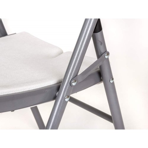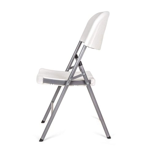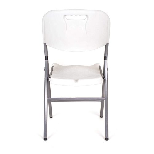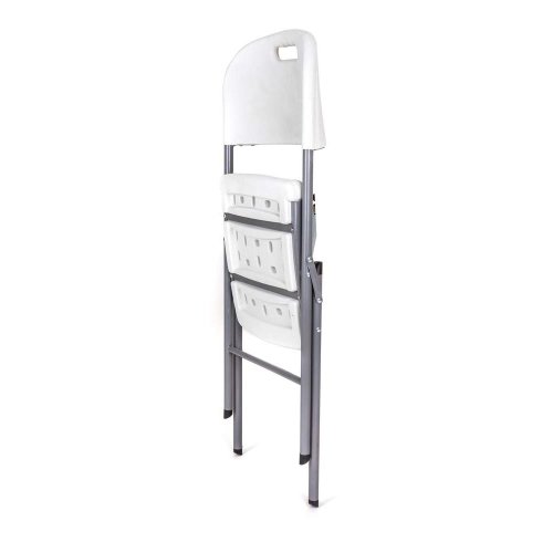 Skládací a velice stabilní židle o celkové velikosti 45 x 50 x 88 cm, po složení vytvoří úsporný balík o velikosti pouhých 27 x 47 x 114 cm. Složená židle je dokonale tvarována pro možnost stohování složených židlí na sebe, čímž ještě více šetří skladovací prostor. Židle je vyrobena z pevné ocelové konstrukce a vysokopevnostního HDPE panelu o síle 45 mm. Hladký povrch umožňuje velmi snadnou údržbu a čištění. Židle je vhodná na cesty, chatu, chalupu, jednoduše kamkoliv, kde po použití oceníte její úsporné skladování. Dodávána v šedobílém barevném provedení.