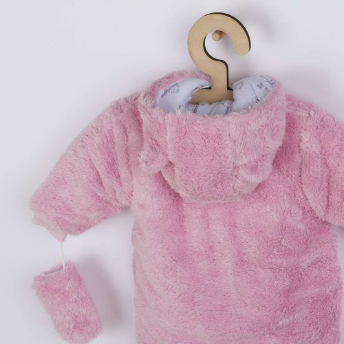 Praktická zimní kojenecká kombinézka s kapuckou New Baby Nice Bear pro Vaše miminko. Zimní kombinézka je vyrobena z dvou vrstev kvalitního materiálů - vrchního hrubšího, hřejivého fleecového materiálu a spodní bavlněné podšívky. Kombinézku zdobí obrázek medvídka. Má praktickou kapuci s roztomilými oušky a teploučké rukavičky na šňúrce. Zapínání na cvočky po celé délce a mezi nožičkami. Složení: vrchní vrstva 80% bavlna, 20% polyester, podšívka: 100% bavlna, výplň: antialergické vlákno. Rozměry: obvod kolem hrudníku cca 61 cm, délka růkávu cca 24 cm, celková délka cca 60 cm, délka rukaviček cca 12 cm.