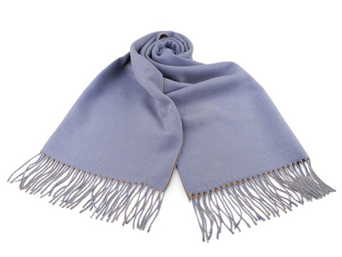 Zimní šála / pléd s třásněmi 70x180 cm - modrá světlá béžová