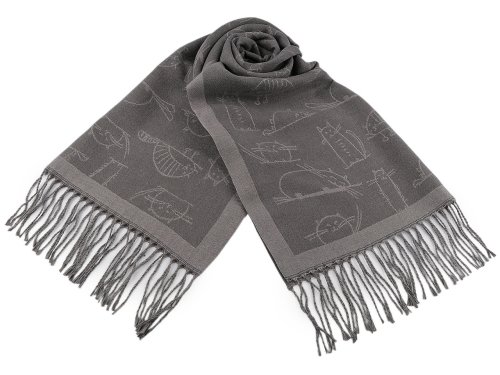 Zimní šála / pléd s třásněmi, kočky 65x180 cm - šedá