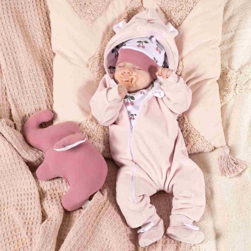Roztomilý stylový a praktický zimní overálek s kapucí a oušky Nicol Emily pro miminka. Každé miminko v něm bude naprosto úchvatné a v pohodlí teploučka. Je vyrobený z kvalitní látky, která je velmi příjemná na dotek. Materiál si po dlouhou dobu zachovává svůj původní tvar. Overálek je podšitý z hřejivého materiálu tzv. Wellsoftu. Rukávky lze ohrnout a tím vynikne hřejivá podšívka. Boční zapínání po celé délce na zip usnadní oblékání. Složení: semiš-vrchní materiál: 77% bavlna, 23% polyester, podšívka 90% polyester, 10% bavlna- typ welsoft. Ideální pro miminka na zimu a podzim. OEKO TEX-STANDARD 100.