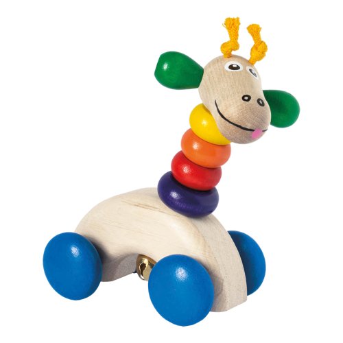 Jezdící žirafa s rolničkou s barevným krkem. Hlavní vlastnosti: Rozvíjí jemnou motoriku dětíVýrobek splňuje požadavky EU na bezpečnost hračekVhodný pro děti od 1 rokuVýrobek je připevněn na papírové kartě