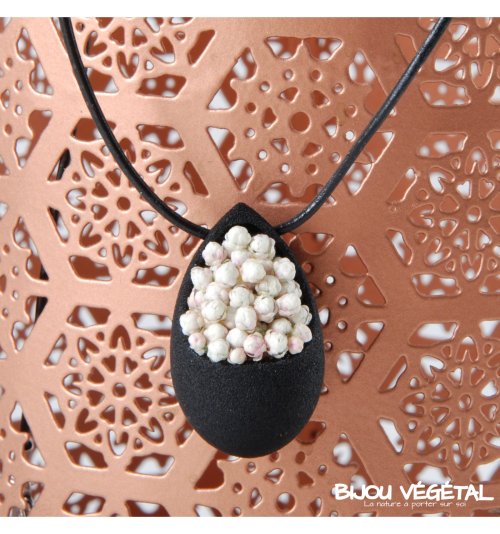 Živé šperky - Náhrdelník Slza černý s trvalými bílými květy Nádherný módní doplněk ve výrazné barvě v kombinaci s trvalými bílými květy vytváří neobyčejný elegantní živý šperk. Živé šperky jsou stabilizovány patentovanou technologií a nepotřebují prakticky žádnou údržbu. Živé šperky sou baleny v krabičce, součástí balení je náhradní trvalá rostlina. Živé šperky jsou vyrobeny ručně ve Francii. Výrobce garantuje neomezenou životnost, při vhodném používání. Živé šperky nesmí být vystaveny velkým teplotním změnám a přímému proudu vody (při koupání, mytí nádobí apod.) Živé šperky byly poprvé představeny na mezinárodním veletrhu klenotů Bijorhca v Paříži roku 2015. Vytvořily je designové návrhářky a dlouholeté kamarádky Maryse a Manuella pro společnost Radis et Capucine. Živé šperky umožňují stálé propojení s přírodou a přinášejí ji doslova na dosah ruky. Francouzská značka Radis et Capucine