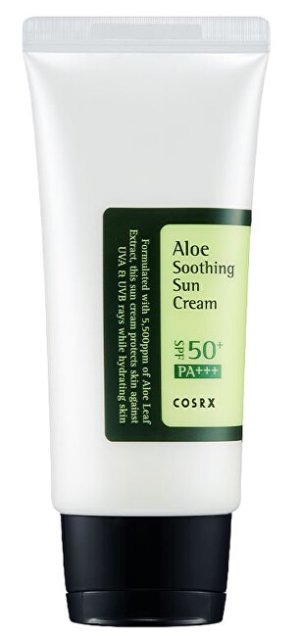 Zklidňující krém na opalování Aloe SPF 50 Pa+++ je opalovací krém, který kombinuje hydrataci a ochranu proti slunci s SPF 50 PA+++ a extraktem z listů aloe, aby byla pokožka hydratovaná i v těch nejteplejších dnech. Vynikající i pro pleť se sklonem k akné.