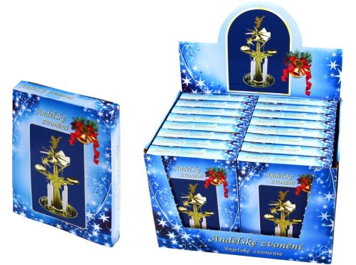 • Andělské zvonění je vyrobeno z leštěného plechu ve zlaté barvě a skládá se z několika dílů, které se snadno sestavují. Balení obsahuje jednotlivé díly k sestavení a 4 svíčky.