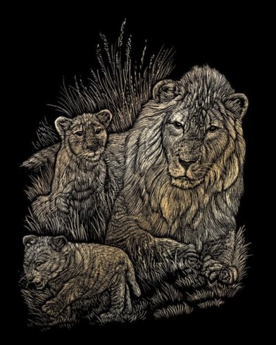 Škrabací obrázky probouzí kreativitu a nadšení a nejen malé výtvarníky zaměstnají na dlouhé hodiny. Papír je potažený černou vrstvou skrývající podklad se zlatým efektem.