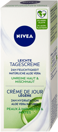 Zmatňující denní krém je skvělým doplňkem vaší každodenní péče o smíšenou pleť se sklonem k maštění. Intenzivně hydratuje až 24 hodin a vyrovnává přirozenou úroveň hydratace pleti. Lehké složení s NIVEA® Moisture Care komplexem, přírodním aloe vera a minerály redukuje kožní maz a snižuje lesk pleti. Samozřejmě se také rychle vstřebává. Uvidíte i pocítíte rozdíl. Pleť je každý den dlouhodobě hydratovaná a zmatněná. Kompatibilita s pletí byla dermatologicky schválena. Složení je veganské - neobsahuje ingredience živočišného původu.