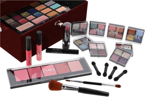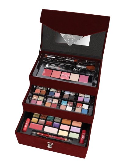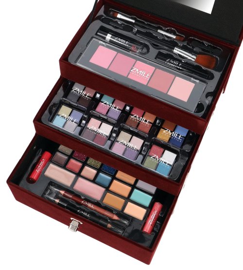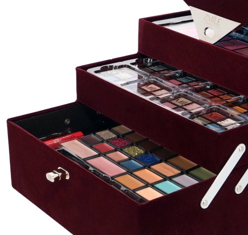 Kosmetický kufřík sametový Beauty Case Velvety – sametový tmavě vínový – celkem 74 ks příslušenství. . Obsahuje 32× očními stíny ve 4 kompaktních kazetách ,5× tvářenku, 3× stíny na obočí, 1xvosk na obočí, 4× krémové oční stíny,4× krém se třpytkami, 2× základní oční stíny, 8× korektor, 2× lesk na rty, 1× rtěnku, 1× řasenku, 1× oboustrannou tužku na oči, 1× oboustrannou tužku na rty, 1× štětec na tvářenku, 1× oboustranný štětec na stíny, 4× oboustranný aplikátor, 1× integrované zrcátko. Dermatologicky testováno, vyhovuje přísným normám EU.