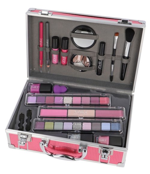 Kosmetický kufřík hliníkovými rámem Marry Berry s integrovaným zrcátkem – celkem 38 ks příslušenství. Obsahuje 18× očními stíny ,2× tvářenku, 1× zvýrazňovač,1× vosk na obočí, 2× lesk na rty, 3× lak na nehty, 1× řasenka, 1× tužku na oči, 1× tužku na rty, 2× oboustranný aplikátor na stíny, 1× oboustranný aplikátor na obočí, 1× štětec na tvářenku, 1× kulaté zrcátko a 1× mini houbičku na maku up. Dermatologicky testováno, vyhovuje přísným normám EU.
