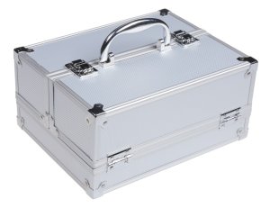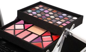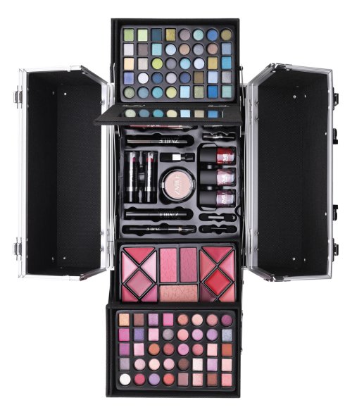 Kosmetický hliníkový kufřík – celkem 113 ks příslušenství. Obsahuje 80× očními stíny, 14× lesk na rty, 3× tvářenka, 3× lak na nehty, 2× rtěnky, 1xpudr, 1× tužka na oči, 1× řasenka, 1× linka,1× tužka na rty, 5× aplikátory/štětce a integrované zrcátko. Dermatologicky testováno, vyhovuje přísným normám EU.