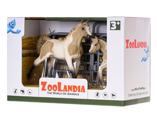 Sestav si svou vlastní farmu s plastovými figurkami z kolekce Zoolandia. Balení obsahuje koně s hříbětem a doplňky. Dostupné jsou 4 druhy - bílý s fleky, hnědý s fleky, světle hnědý, tmavě hnedý. Vhodné pro děti od 3 let.