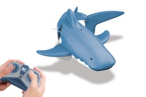Žralok bílý RC do vody. Velikost 35 cm. Frekvence 2,4 GHz. 1 rotor na každé straně pod předními ploutvemi (celkem 2 rotory). USB nabíječka v balení. Pohyb dopředu a zatáčení do stran