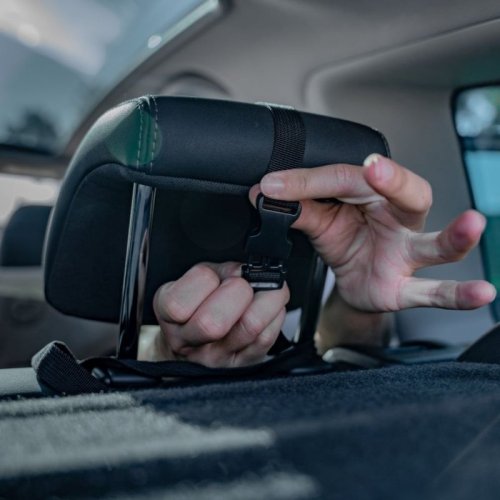 • snadno se instaluje pomocí popruhů se sponou na opěrku hlavy zadního autosedadla