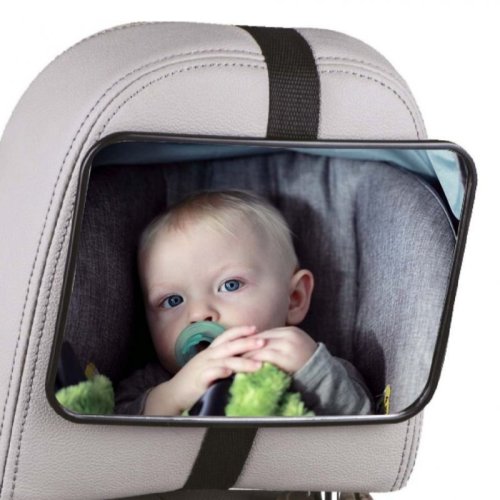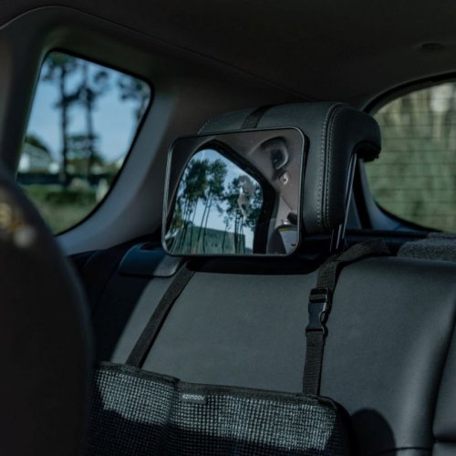 Mírně zaoblené zrcátko, které se upevňuje na opěrku hlavy zadního autosedadla.