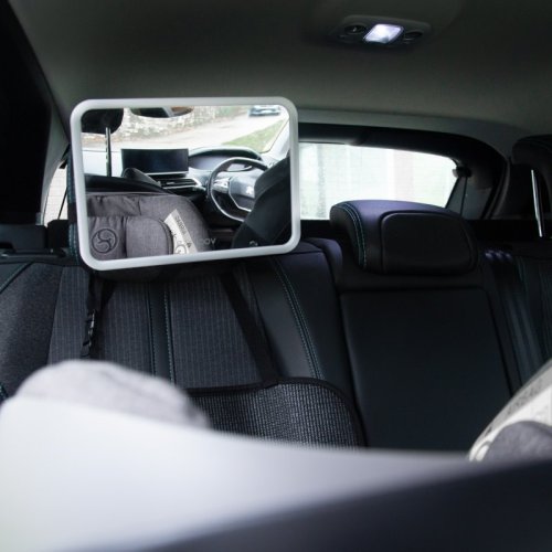 • velké zrcátko s integrovaným LED osvětlením, které umožňuje sledovat děťátko i během nočních jízd v autě