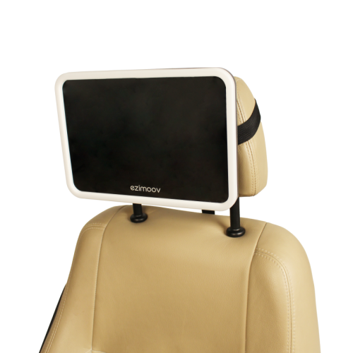 Extra velké zrcátko s LED osvětlením, které se upevňuje na opěrku hlavy zadního autosedadla.