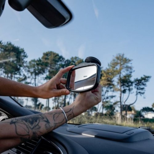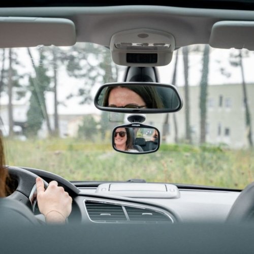 Zpětné zrcátko, které poskytuje rodičům plnou viditelnost na zadní sedadla během jízdy v autě, aniž by se museli otáčet.