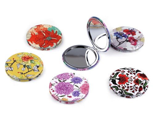 Kulaté otevírací zrcátko je skvělý pomocník pro opravu make-upu během dne. Je ploché, skvěle se vejde do každé dámské kabelky. Má kvalitní zpracování z eko kůže s dekorem květů. Potisk je na horní i dolní straně. Uvnitř jsou 2 zrcátka, jedno je zvětšovací. Náš tip: zrcátko bude krásným malým dárkem na valentýna či k jiným příležitostem.