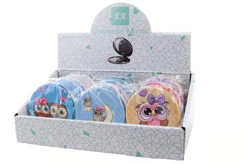 Kulaté zrcátko s motivem roztomilých soviček. Průměr cca 7 cm. Po otevření zrcátko na obou stranách. Více druhů - dodáváme dle skladové dostupnosti. Baleno v sáčku. Výrobek není hračka.