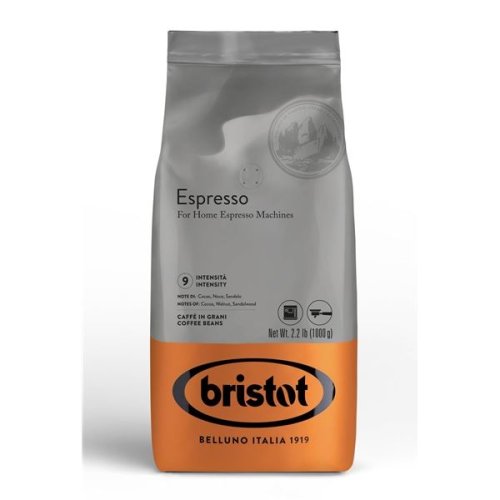 Zrnková káva Bristot - Espresso, 1 kg Zrnková pražená káva, směs 20% Arabiky a 80% Robust Káva s vyšší intenzitou 9/10 s bohatou krémovou pěnou a silným aroma.