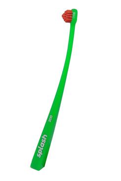 Medium kartáček Splash brush 200 se štětinami tloušťky 0,20 mm, pyramidový tvar hlavičky s trojúhelníkovými pogumovanými štětinami a pružnou ohnutou rukojetí pro dokonale čisté zuby, téměř celý mezizubní prostor a dásně. Splash Brush se jednoduše dostane opravdu všude, včetně zadní stěny zubu.