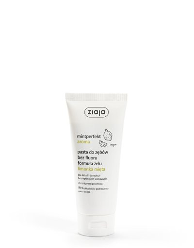 Mintperfect aroma je moderní ústní hygiena založená na minerálních přísadách: oxid křemičitý, uhličitan vápenatý, bílý jít a perlit. Jemně čistí zuby bez rizika odstraňování zubní skloviny. Má bylinné aroma obsahující přírodní olej z máty, limetky, eukalypty a zeleného čaje.Zubní gel limeta máta. Pro děti a dospělé bez ohraničení věku. Chrání před zubním kazem. Místo fluoridu obsahuje erytritol - přírodní složku účinnou v prevenci zubního kazu a bezpečnou pro zuby.Bez lepku.Obsahuje 91% složek přírodního původu.