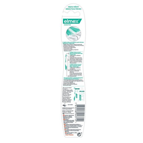 Zubní kartáček čistí díky svým hedvábně měkkým vláknům obzvláště jemně a přitom důkladně. Jeho překřížená zelená vlákna napomáhají čištění díky schopnosti pronikat hluboko do mezizubních prostor. To bylo prokázáno studiemi provedenými na univerzitách ve Švýcarsku a ve Spojených státech. Obnažené zubní krčky a citlivé zuby vyžadují zubní kartáček s obzvláště měkkými a jemnými vlákny. Výzkum elmex vyvinul zubní kartáček Sensitive, který tento požadavek řeší.