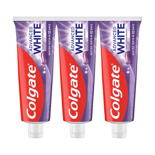 Rozjasněte svůj úsměv se zubní pastou Colgate Advanced White Purple, která obsahuje gel s fialovými pigmenty a klinicky ověřený bělicí systém. Odstraňuje povrchové skvrny a zabraňuje jejich novému vzniku v budoucnosti. Díky této fialové zubní pastě získáte bělejší zuby již za 10 dní. Také osvěžuje dech, bojuje proti zubnímu kazu a je bezpečná pro zubní sklovinu při každodenním použití.