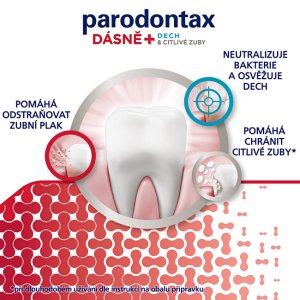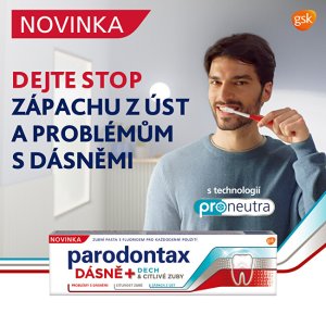 Parodontax dásně, dech a citlivé zuby nebojuje pouze s problémy dásněmi, ale zaměřuje se také na zápach z úst a na citlivost zubů, které mohou být vyvolané problémy s dásněmi.