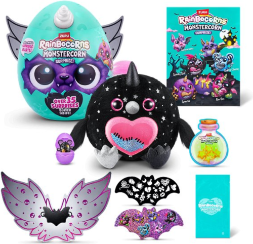 Tyto děsivě roztomilé příšerky ukrývají více než 35 překvapení, která čekají jen na to až je objevíte. Každý z šesti Monstercornů má svůj vlastní jedinečný šarm a vzhled, ale nebojte, jsou příliš roztomilí na to, aby vás vyděsili. Přeměňte sebe i svého Monstercorna na noční bytosti pomocí netopýřích křídel, která jsou součástí balení. Objevte kouzelnou směs, vytvořte vlastní tajemné elixíry a užijte si spoustu zábavy. Nezapomeňte rozbít hrůzostrašné vajíčko Boo-boocorna a zjistěte, který strašidelný kamarád se skrývá uvnitř vajíčka! Monstercorn i jeho strašidelná příslušenství navíc svítí ve tmě, takže se zábava nikdy nezastaví. Každý Monstercorn má na sobě srdíčko, které můžete přetřít rukou a odhalit, co miluje. Nasbírejte všech šest strašidelných plyšových Monstercornů a prozkoumejte svět plný záhad, překvapení a kouzel! Balení obsahuje: 1 magické vejce, 1 provázek na křídla, 1 plyšová hračka, 1 směs lektvaru (40g), 20 nálepek svítících ve tmě, 6 nálepek, 1 plakát, 1 booboocorn, 1 vejce booboocorn, 1 sběratelský průvodce