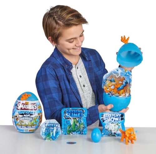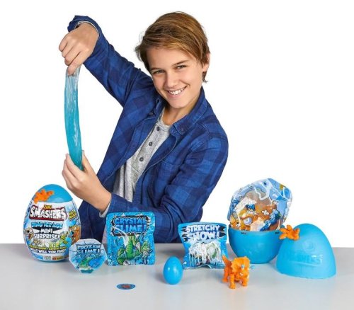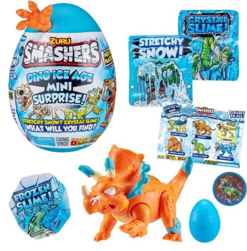 Rozbijte vejce a sestavte svého dinosaura! V tomto balení naleznete jednoho z 6ti dinosaurů, ale pozor! Nejdříve budete muset jeho části dostat ze slizu nebo třeba zmrzlé či pružné hmoty. Hoďte svým mini Smashers vejcem (Smash Egg) o zem a začněte budovat svoji sbírku Ice Age Smashers! K dispozici je také aplikace v anglickém jazyce , která vám zaručí ještě více zábavy a propojení s dinosaury skrz Váš chytrý telefon. Obsah balení: