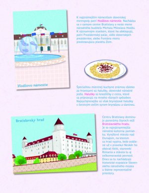 Oblíbená série minimiky přichází s další novinkou v podobě zábavné samolepkové knížky, v níž budou děti společně s panenkou Zuzkou a jejími kamarádkami Luciou a Katarínou objevovat nejznámější kouty slovenské metropole Bratislavy. Známé bratislavské scenerie mohou děti doplňovat spoustou krásných samolepek podle vlastní fantazie a v knížce najdou také mnoho zajímavých informací o tamních památkách, známých místech, ale také třeba o vyhlášených specialitách slovenské kuchyně.