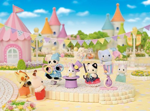 Oslavte 40. výročí Sylvanian Families s exkluzivní edicí figurek Dream Showtime Babies. Tento jedinečný set přináší čtyři miminka – panda Angela, slon Hilton, černozlatá kočička Angelica a bílá zaječice Poplar – všechny připravené předvést své kouzlo. Každá postavička je oblečena do tematického oblečení a doplněna speciálními rekvizitami na cirkusovou show – jednokolka, magický klobouk, kruhy na žonglování, balanční deska a další doplňky, které oživí hru. Hračky Sylvanian Families rozvíjejí představivost a povzbuzují děti k hraní rolí. Hra s figurkami rozvíjí kreativitu a učí emocím vytvářením a vyprávěním příběhů založených na každodenních zážitcích a pozorování světa. Vyznačují se nejvyšší kvalitou a výjimečným důrazem na detaily. Figurky Sylvanian Families jsou pokryté měkkým semišem, mají pohyblivé končetiny a hlavu. Oblečení lze z figurek sundat a vyměnit za jiný outfit. Baleno v krabičce. Rozměry balení: 15 x 17,6 x 4,5 cm. Věk: 3+
