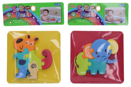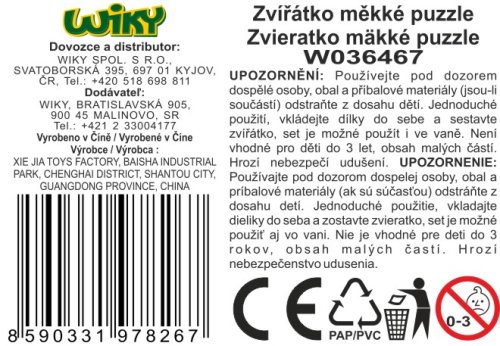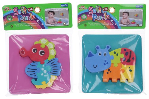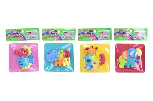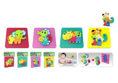 Zvířátko měkké puzzle. Pěnová podložka, do které se vkládají pěnové puzzle dílky zvířátka. Rozměry 14x14x1,7 cm. 4 varianty - slon, nosorožec, klokan, mořský koník.