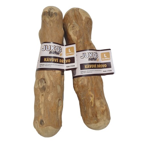 Hračku používejte pouze pod dohledem. Pokud je již dřevo tak malé, že by je pes mohl polknout, nahraďte jej novým. Kávové dřevo je přírodní materiál, proto je každý kus originál s rozdílným tvarem i hmotností.
